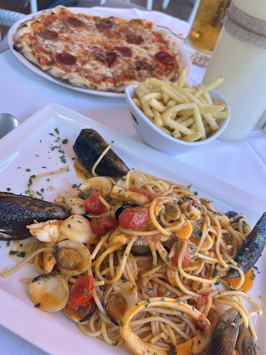 went here for dinner during our holiday after seeing the reviews. We were seated outside very quickly and had our drinks order taken and we were given the menu. Then we waited and waited and watched at least 5 or 6 other tables get seated and have their food orders taken before we were even looked at again. After 15 to 20 mins someone took our food order and I can only describe the food as okayish. Had bruschetta as a starter and can only say this we not like and version i had eaten before with grated tomatoes and a basil leaf served over a sprinkle of grated mozzarella cheese and this was presented on a very think slice of granary bread. Partner had the burger and was a bit put off when it came with a fried egg on it as this was not mentioned on the menu (if it had been he would have asked for it to be left off. I ordered the pork tenderloin I was rather surprised when it came and had this strange green/blue piped gunk with a sprig of thyme stuck in it which i did not want to even try and a huge sprig of basil that would have been better being used for the bruschetta. When i had finished i asked what this gunk was and was told it was mashed potato and they had no idea why the kitchen dyed it green/blue. All in we found the service and the food to very underwhelming and we will...