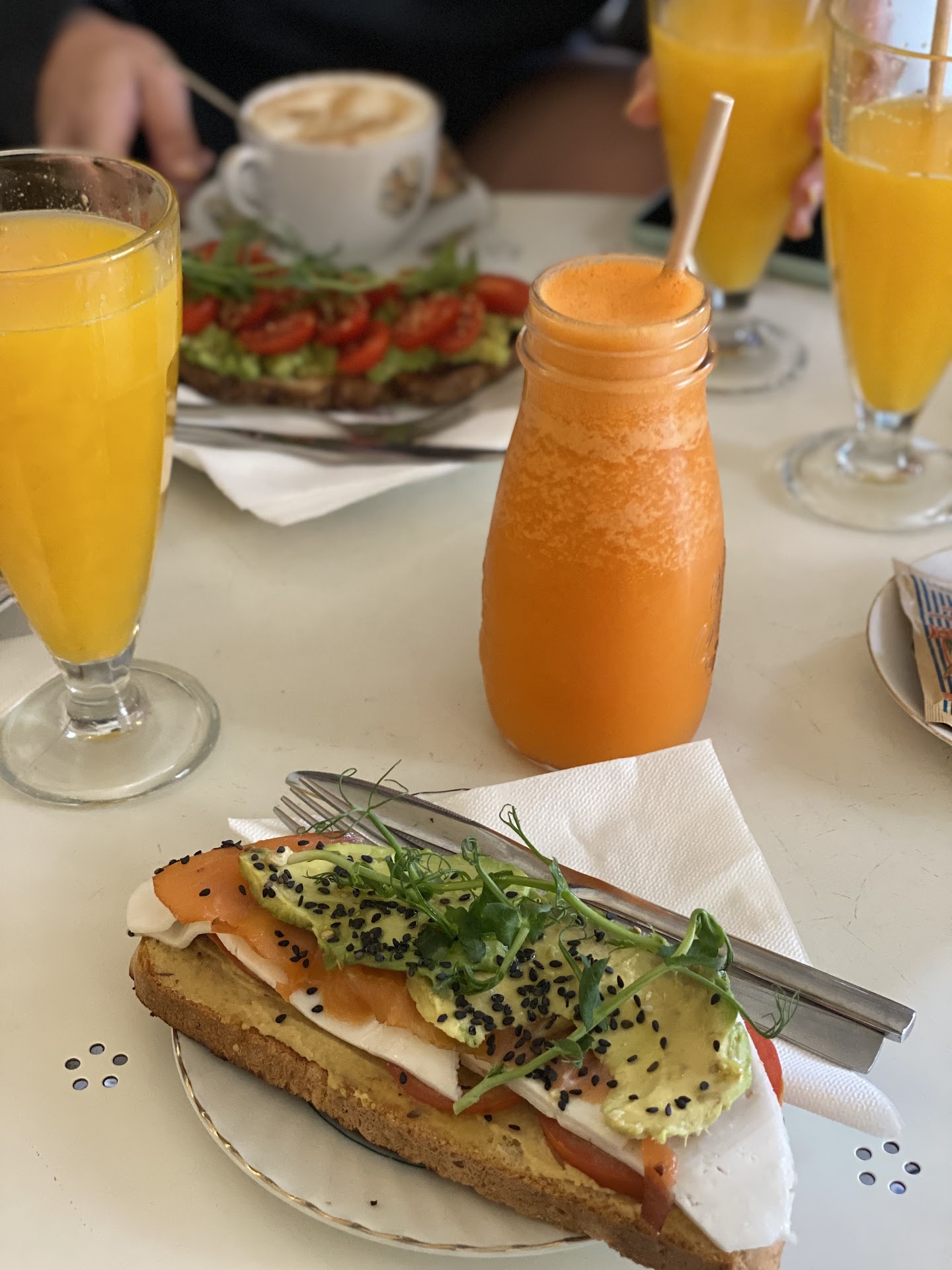 Second we got our drink (2x the same smoothie) after 20 minutes and by the time the table with the girls finished their breakfast and paid, we still didnt have our food (which was only a peanutbutter toast and eggs with avocado). We asked for it and then we had to wait in total 45 mins for our bread. That is seriously ridiculous. What stressed me the most: noone of the staff apologized. I mean bad service can happen but then if they dont even regret it, thats not customer friendly.