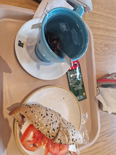 Horrible. La peor cafe que he visitado aquí. El café estaba tan débil que tuve que devolverlo, la galleta no era comestible (mi amigo la escupió), los sándwiches estaban secos. Creo que podría haber sido el primer día de la niña, comprensiblemente más lento, pero estuvimos esperando años en la caja para que encontrara todo sin ayuda, por lo que las cosas se enfrían. ¡Y era mucho más caro que otras cafeterías que son buenas! Desperdicio total de casi 20 €. Si la gerencia de Valery lee esto: pruebe la galleta gruesa y redonda con nueces y vea si puede comerla ... en serio, la peor galleta...