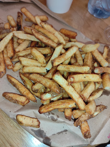Las patatas fritas son del tamaño de las del Burguer King, pero al estilo de las Delux del McDonald's, pero con algo de piel y una especie de paprica dulce al estilo TacosBell. Me tocaron recién hechas, pero parecían netamente mejores que en otros sitios.