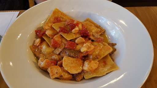 Read moreMala experiencia. Nos recibieron en la puerta y nos ofrecieron una mesa que aún estába sin limpiar, con las copas y platos de los comensales anteriores. Por ello les comuniqué si me podían poner en otra y me ofrecieron una al lado de la anterior. Estas mesas estaban al lado de la puerta de emergencia, tan apartadas los camareros no se daban cuenta de que necesitábamos pedir algo. Estaban colocadas ahí pero como si no lo estuviesen pues estaban apartadas de los salones y de las demás mesas. La comida, correcta menos por algunos detalles, como por ejemplo la nata del postre que en uno de los platos estaba derretida y totalmente líquida, la nata se coloca antes de servir para que esto no ocurra, otra sorpresa más que añadir de este servicio. Una vez que nos sentaron esperamos 10 minutos a que nos atendieran, sin bebida ni vasos siquiera , pues los que había en la mesa estaban sucios. Por fin llega el momento de pedir, tras nuestra petición tardaron 35 minutos en servir, durante la espera se equivocaron de plato dos veces. Los segundos nos los trajeron a los tres minutos de traer los primeros con la excusa de, "Así no os hacemos esperar después" equivocándose también y teniendo que cambiar los platos de nuevo, solo les faltó traernos el postre también. Pero no, el postre tardó 15 minutos después de pedirlo. Al pedir la cuenta tampoco fueron rápidos, suerte que teníamos el dinero en la mano y rápido se lo dimos, para devolvernos una moneda de nada tardaron aproximadamente 10 minutos también. Mala experiencia en la localización de la mesa, mala experiencia en servicio, pues si queríamos pedir otra bebida o un vaso nadie nos veía, y mala experiencia en trato ya que si escribes la carta en Italiano no muestres dejadez si se te pregunta por su traducción o ingredientes. No volveré ni recomendaré...