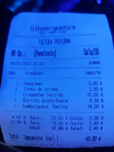 Read moreRESEÑA IMPORTANTE: Al ir a cualquier sitio como cliente esperas un trato al menos de respeto, como en cualquier caso. Lamentablemente no podemos decir que este local se dirija al menos con cordialidad a su clientela. Debemos destacar que este no es el caso de todos los camareros, pero sí de su encargada, o al menos alguien que parece que tiene la voz de todos ellos por como nos ha atendido. Desde el principio es un local que solo cuenta con su número de teléfono en Instagram, pero cuidado que llamando como en cualquier sitio no se puede reservar y contestando de forma grosera que todo debe reservarse por WhatsApp, aún así les dimos una oportunidad. Continuamos… a última hora contamos con dos personas más y como fue una decisión momentánea no pudimos avisar antes, su contestación “no tenemos espacio ni sillas para todos”. Realidad: estábamos solos en la parte de arriba (junto a una pareja, es decir, dos personas). En todo momento nos dirigimos a la camarera de forma respetuosa y preguntando si se podría coger SOLO UNA silla y que luego nos intentaríamos acoplar para poder estar juntos y no molestar al resto de comensales. La trabajadora como es lógico avisó a esta supuesta encargada a lo que esta decició que nos habíamos dirigido mal a su compañera (no lo creemos, pero si consideras que hubo un mal gesto no fue para nada la intención, agradecemos el trato de la camarera de arriba, NO de su encargada). Esta señora con pelo largo y aparentemente rubia, decidió subir con tono sobradamente prepotente y de bastante mal gusto diciendo de nuevo que no tenía sillas a lo que un acompañante respondió con cordialidad que la devolvería en cuanto la mesa de al lado la necesitase (estaba vacía), al igual que nos invitó a irnos porque según su criterio no cumplíamos las normas, debido a ella nos fuimos y gracia a eso pudo contar con más espacio, pero sin 10 clientes a los que echó, una pena porque perdió esa cuenta que estaría acabando a estas horas, la ocasión de fidelizar clientes (dudo que esta señora sepa este significado) y oportunidad de que otros al leer estas reseñas quieran ir a este lugar. Lamentamos que sus compañeros l tengan que sufrir este trato y esperamos que gente como ella dure poco de cara al público, ya que es algo para lo que obviamente no sirve, siendo como indica el nombre del local una “Sin Vergüenza”, buen trabajo, todo el mundo quiere...