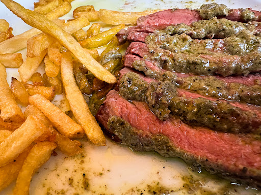 Excellent restaurant if you like black Angus beef. Meat is freshly cut on the day of serving. The sauce with fresh herbs is delicious. French fries are completely made following the tradition (first cooked, fried 2 times). Price quality is unbeatable. If you are on a diet but want to have occasionally a dessert, here is the time to spoil. Here it is fine tasting. The owners of the restaurant treat you as their guests and want to give you the best experience and fine cuisine. Yes, there is only one dish and fresh lobster if you reserve it. But the quality of food and wines are so good you will be coming back for more.