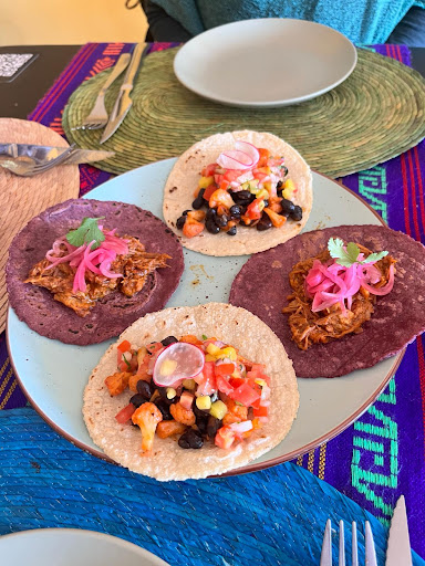 Probably the best food we have had in Mallorca. Everything we tried was a great blend of contemporary cuisine and traditional Mexican recipes. We visited as a couple and tried one salad, two side appetizers, two different types of tacos, a dessert and two cocktails. Yeah I know! A lot of food, but it was fairly priced and delicious. The chicken salad had a great twist of an ice cream avocado, which was unique and well fitting to the well spiced chicken. The beef tacos were a perfect blend of sour, spicy and acidic. To top it all the pan de elote dessert was a perfect combination of sweet and nutty closure to our dinner. If you are in Mallorca, even in Palma I would definitely recommend the combination of driving to one of the nearby beaches and lunch or dinner on this restaurant. Will...