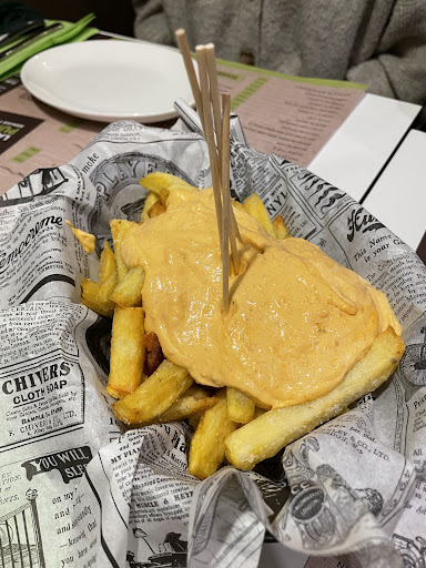 Siendo totalmente objetivos el servicio de la camarera muy correcto pero lo demás … Platos que comimos Tres pizzas : todas distintas ( mini ) muy muy aceitosas a un nivel que ya no es por gusto están muy muy pasadas ( encharcadas) La masa correctisima si no fuera por el aceite estarían muy muy buenas . La pizza con jamón “ibérico” sabe a sal exclusivamente , no sabría decir si realmente es ibérico pero no lo parecía. Los nachos con chedar : Correctos y el chedar con sabor correcto. Huevos estrellados : Correcto , pero el huevo no estaba echo , no chorreaba estaba muy muy echo . Los postres : Tarta de manzana CALIENTE o eran postres congelados o acababan de hacer la masa y no lo dejaron enfriar ( Cosa que dudo ya que no s un pastel frío ) con un quilo de canela ( eso puede ser a gusto del consumidor) pero en este caso era exagerado .