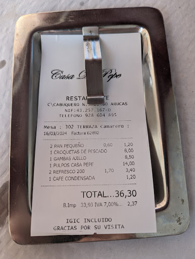 The best shrimps I have ever eaten ! (Shrimp with garlic) and really, really tasty octopus with vegetables (pulpos casa pepe), you need to go there and try it ! Service, the lady was Soo lovely and smiling, one of the best food experiences...