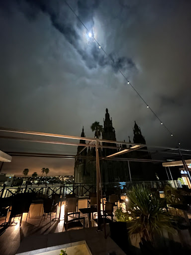 Read moreGRATÍSIMA EXPERIENCIA!!! Como miembro de una familia con gran talento para la cocina, debo de reconocer que soy muy selectiva a la hora de comer por fuera. De hecho la frase "en casa como mejor" suele acompañarme tras muchas visitas a restaurantes... ¡Hoy no es el caso! ¡He disfrutado muchísimo! Para empezar, como vegetariana he podido escoger y dejarme sorprender por deliciosas alternativas sin tener que conformarme con la típica opción libre de proteína animal puesta en un menú por cumplir con la demanda. Los vegetarianos comemos más que "hojas verdes" y eso su Chef Alberto Aparicio lo sabe muy bien. Gracias por elevar mi tipo de dieta con tu cocina de autor. El mimo y la dedicación puesta en cada plato es palpable: cocina de gran nivel con identidad propia, elaboraciones caseras muy bien ejecutadas, buen producto, creatividad sin límites, presentación que atrae... Felicidades para ti y tu gran Equipo de Cocina, hacéis un gran trabajo juntos. ¡Hoy he vuelto a la infancia con cada bocado, con cada explosión de sabores en boca! No podría recomendar una sola cosa, y es un pensamiento que comparto con mis acompañantes quienes llevan una alimentación normal y no podían parar de rebañar platos como el arroz negro o el cordero que probaron. ¡Los dados de tapioca, bendita locura! ¡Algo único! ¡Y qué decir de los postres! Pero me reitero no podría escoger, todo todo estuvo de lujo. Mi consejo, vengan con apetito y tantas veces como puedan y descubran la historia de cada especialidad del Chef. Nadie mejor para explicarles que el camarero Samuel, quien no importa lo ocupado que esté porque siempre encuentra un minuto para describir el plato al servirlo. Parece un simple detalle, pero sin duda marca la diferencia, te envuelve más en la experiencia, demostrando además compenetración y respeto mutuo entre sala y cocina. La verdad, se sentía orgullo para con la oferta gastronómica ofrecida en cada palabra de Samuel y ya sabemos que la buena vibra es contagiosa. ¡Fan de sus propios compañeros, qué lujo y qué necesario! ¡Y ahora también yo de lo que logran transmitir! Agradecer también al resto del personal, trabajadores jóvenes que no dudan en atenderte con una sonrisa. En definitiva, comida exquisita, trato afable, vistas emblemáticas, música de ambiente agradable y a un volumen conveniente e instalaciones bien protegidas del sol. A seguir trabajando y mejorando día a día que vuestro Rooftop estoy segura va a ser un referente en toda la isla. ¡Gracias chicos, volveremos! PD: estuve tan inmersa en mi disfrute que me olvidé hasta del móvil de ahí que no adjunte fotos. Eso para la próxima....