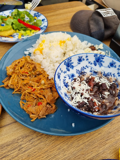 Risto bar sulla strada, con piatti locali e venezuelani. Quasi tutto fritto, con un giusto rapporto qualità prezzo e nulla di eccezionale ma nemmeno nulla di disgustoso. L’idea di mangiare in mezzo alla strada non mi dispiace, ma il pranzo è stato completamente rovinato da una donna dello staff isterica, che ha aggredito un nostro commensale in modo inaccettabile. Mai vista una maleducazione simile al ristorante. Falsa la versione che leggo ora della proprietà. Dopo la prima aggressione verbale sono intervenuto io, spiegando all’amico Stefano che probabilmente era la proprietaria del locale, che lo invitava a spostarsi per non ostruire la via di uscita. La realtà è che non c’era lo spazio per un tavolo in più e che l’irritazione e la rabbia sono nate e cresciute solo da parte di questa donna, che certamente aveva la luna storta a causa di altro e non di questo episodio. Ho cercato di far abbassare i toni, tenendo la voce bassa e invitando questa signora a spiegarci con calma come avremmo dovuto disporci ed ottenendo in cambio altre risposte molto maleducate ed aggressive. Questa donna è la proprietà devono imparare a scusarci invece...