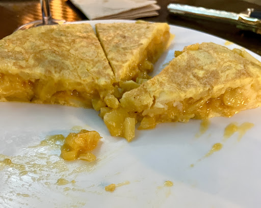 The tortilla, made only with eggs and potatoes — a real debate starter when it comes to finding the best one. Well, this was definitely one of the best I’ve had. The doneness was spot on. It was rich in flavor and subtlety. If I had to nitpick, I’d personally prefer the potatoes a bit crispier on the outside, but everything else — including the seasoning — was perfect.