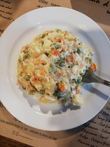 Could not give us the pilgrims menu for 15 euros, which was clearly displayed outside on a board, as he said they run out of that food. We however ordered stuff that was only on the pilgrims menu and were charged double for it. To be precise, ensaladilla + pollo al horno, without dessert, came to approx. €18.50, without even dessert. Clearly, they did not run out of food. How dishonest.