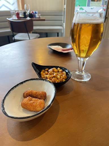 Read moreThis place deserves 10 stars because I went there twice and each time had a five star experience. The drinks are yummy and they bring you little snacks to nosh on. Definitely try the croquettes but with jamón. I had Caesar salad for lunch and steak plate for dinner. Both were meals were top notch. The salad is packed with lots of yummy ingredients including the famous Arzua cheese. The steak was super tender and they brought an assortment of sauces to complement the meat. The vibe was super busy but the staff if hustling! Really enjoyed talking to...