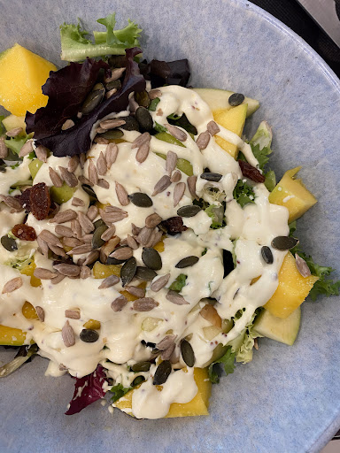 Menú 1(Ensalada de mango y manzana con vinagreta de mostaza, pollo con salsa de queso Arzúa, Tarta de queso Arzúa)🟢 - 15€