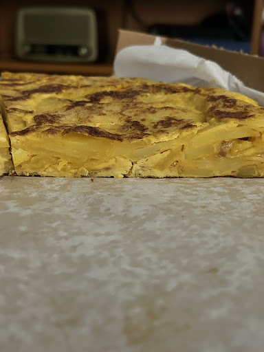 Además de esto, pedimos la tortilla poco hecha y no hay nada más que ver la foto… patatas enteras (algunas crudas) y dura como una piedra. Vamos, que para cortarla hemos tenido que traer dinamita y volarla 😂