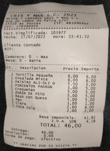 La primera vez (hace ya casi un año) nos decidimos a entrar por sus buenas reseñas (lo puntúan entre las mejores opciones dentro de As Pontes de García Rodríguez), pues estábamos de viaje y queríamos hacer una parada en este pueblo, y fue una buena decisión venir aquí. Nos atendió las dos veces el mismo camarero, que es muy atento y agradable, y también muy rápido (a pesar de estar bastante llenos). Es un mesón - restaurante bastante antiguo, pero es acogedor y siempre tiene buen ambiente.