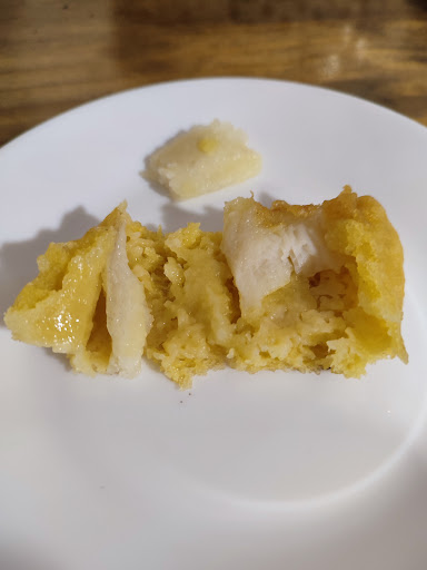 Pedí un bocadillo de calamares porque ni el arroz ni el resto de cosas se me hacían muy apetitosas, me lo hicieron como favor ya que al tener tantas cosas entiendo que no hagan bocadillos y no tengan experiencia en hacerlos, pero recomendaría que el próximo que les pidan le pongan algún aro más, iba muy pobre, que es la comida de una persona, pedí zepelines para complementar porque eran grandes y llamativos y eran todo masa de buñuelo, pescado poco... No sé si les compensará escatimar así en producto pero a mí otra vez no me pillan. No todo es cobrar, quien compra en estos sitios necesita comer con un mínimo...