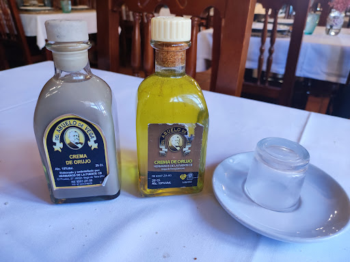 Read moreMe van a perdonar pero no entiendo cómo se puede otorgar un 4,8 de media a un sitio donde sólo te ponen un menú cerrado de cocido de garbanzos. El sitio está bien, el trato es bueno y el cocido...pues es eso, un cocido de garbanzos...para alguien que entienda algo de cocina es algo que requiere mínima elaboración y el coste de sus ingredientes no justifica los 50€ más IVA y bebidas aparte, en mi humilde opinión, que no tiene que ser la de otros, por supuesto. Y tampoco hablo sólo de este restaurante, creo que otros tienen esa misma política de "sólo cocido", si vas en un grupo y no te apetecen garbanzos o eres vegano o lo que sea, no te hacen ni una triste tortilla francesa, eso le ocurrió a un grupo que entró después de nosotros, me pareció muy triste... Y vamos a dejar de lado que el datáfono no tuviese cobertura porque a veces estás cosas pasan... En definitiva, hay que saber a lo que vas, un pueblo fantasma más o menos cuidado, con dos calles llenas de restaurantes donde sólo se come un cocido de garbanzos y un postre de natillas, con canela y con galleta maría, nadie te pregunta nada... Fui, lo vi y no volveré. Le doy el aprobado al sitio...