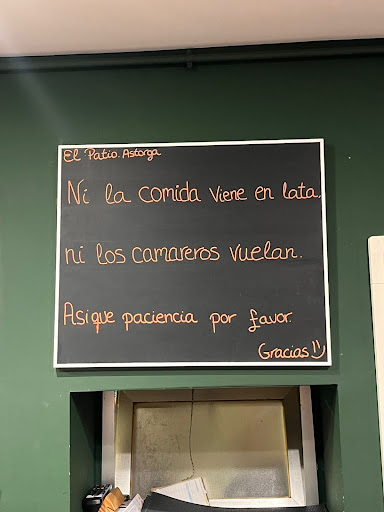 Read moreSillas y mesas de plástico y manchada de grasa la silla. Mesa para 2 comensales muy reducida y sin un simple mantel de papel, sí individual tipo goma de rejillas , los cuales para mi modesto modo de ver, son totalmente antihigiénico ya que no se lavan después de cada servicio utilizándolo nuevamente para otros comensales. Se efectuó llamada días antes para la reserva solicitando si ellos ponían Cocido Maragato, respondiendo que el establecimiento tenia tanto cocido como carta. Cual fue nuestra sorpresa que al demandar el cocido la persona que nos está tomando la comanda, nos manifiesta que ya ha servido 8 a otros comensales y está agotado, por lo cual nos vemos obligados a pedir la carta. Nos recomienda un bacalao al horno con una salsa muy rara de cuyo nombre no acuerdo y nos comenta que es una salsa realizada por esos, con fécula , ajo etc., la cual da una capa crujiente al bacalao. Nuevamente somos sorprendidos cuando la mencionada salsa, el crujiente es solo el nombre, pues estaba blando y correoso y no era otra cosa, que un simple alioli. El plato de mi acompañante una sepia a la plancha la cual iba troceada en lugar de entera y fría. Es de mencionar la señorita que también está en la sala sirviendo el exceso de confianza que se toma, gastando bromas improcedente y de...
