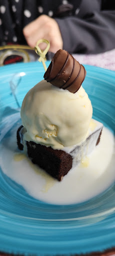 Read moreAlready from the start we liked the place as it actually had 5 vegetarian options in the menu which is unusual in this part of Spain. We ordered 2'veggie dishes. One of them was very good _ carrots croquettes. The other one was soy and almond dish which by the look was not really appetising (see pic) and really the look and taste could be improved.the balls themselves had nice taste but were very boring to eat them all and this almond sauce was not really interesting. Dessert of dates tart was...