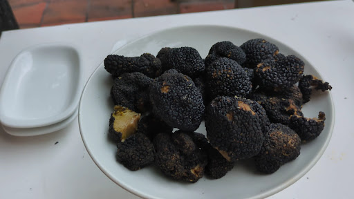 Pero sin duda, el plato estrella es el solomillo trufado. La carne es tierna, perfectamente cocinada y con una generosa cantidad de trufa que inunda cada bocado con su fragancia terrosa y delicada. Cómo recomendación, ya que la carne llega ya fileteada en una bandeja muy caliente, si te gusta la carne muy poco hecha es mejor que pidas sin filetear y en un taco entero de solomillo.