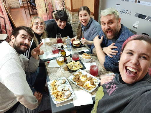 Read moreEra la primera vez que íbamos y repetiremos sin duda. Camarero súper atento, educado y agradable. La comida deliciosa y muy rápida. Somos cuatro y pedimos unas albóndigas en salsa de champán y estaban tremendas y muy abundantes, una hamburguesa vegetariana con patatas (caseras y crujientes) un plato de huevos revueltos con... No recuerdo el nombre, pero era una especie de carne mechada con salsa mejicana picante que estaba brutal y otro plato de picadillo con Cabrales, patatas y huevos. Además nos dio unos entrantes de morcilla matachana que estaban muy buenos y entraron muy bien mientras esperábamos. Me quedé con ganas de probar las hamburguesas que había de varios tipos y sonaban muy bien, pero ya tuvimos que salir rodando de lo rico y abundante que era todo, así que habrá que volver. Nos ha...