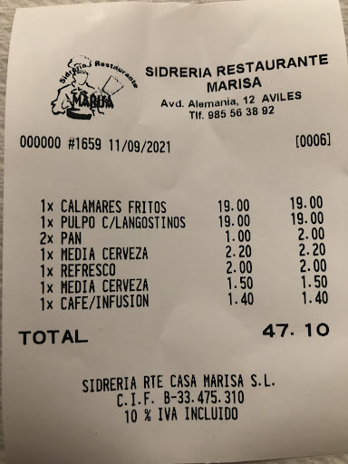 Read moreLa sidrería es como bien dicen algunos comensales de las “antiguas” , no es el mejor sitio a nivel estético para ir con tu pareja ni de lejos, da un aspecto a primera vista de lugar poco cuidado …. No te ponen carta , ni siquiera si la pides , el camarero te indica aquello que puedes pedir , sin informarte del precio de nada , es quizás lo peor de este sitio , la atención no es mala , y la comida tampoco , calamares frescos , un poquito duros pero ricos 19€. Una cazuela de pulpo con gambas 19€, también estaba bueno , quizás muy picante y mucho ajo , pero pulpo tierno y rico. Precio “estándar” de 19€ el plato . Bebidas bien de precio. En definitiva , no es un lugar malo a nivel de calidad de comida y tiene buena atención , pero creo que en general no es lo...