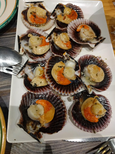 Read moreUn vermut que se alargó por sus buenos pinchos, nos hizo llevar algo de la carta para comer en casa, brochetas de pixin y gamba en una salsa espectacular y unas croquetas impresionantes que despertó la curiosidad de probar su carta. Accedimos a un comedor íntimo, de luz tenue y aire acondicionado agradable y mientras llegaba la comanda nos deleitaron con unos mejillones grandes en una salsa picante y muy gustosa. El servicio rápido a manos de unas chicas muy agradables,amables y respetuosas, pero destacar uno de los platos EL BACALAO ...impresionte no solo por la cantidad servida, sino por la calidad del producto, su punto perfecto y ese pisto con la cama de patatas que se acompañaba, de lo mejor que he comido. La segunda opción pulpo a la plancha, una forma distinta a la tradicional e igualmente recomendable.compartimos el postre tarta y helado riquisimo y un café espectacular...ellas son muy atentas...volveremos...