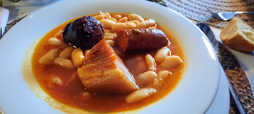 A día 5 de Diciembre. Hora de reserva 15 segundo turno. Llevaba tiempo queriendo ir a probar la fabada. "PREMIO MEJOR FABADA DEL MUNDO 2024". Imagino que ese premio se comprará o se pagará por otros medios ya que es imposible que la fabada que comí a día de hoy con mi padre tenga la capacidad de ser degustada hasta por el menos crítico. Explico mi experiencia: Como reseñe hice reserva para las 15 horas para dos personas, cierto que no dan oportunidad de reservar mesa o al menos avisarte que siendo dos personas te siente al lado de la puerta ( siempre abierta), que con el fresquito de diciembre no es que sea muy apetecible. No seré yo quien comande un reserva pero lo curioso es que teniendo sala con 6 mesas frente a la barra y un salón caliente al fondo no instalen a los comensales a dicho salón. Iba con mi padre mayor de 85 años, la mesa parecía el vaivén de un barco en mala mar, " parece que lleva bastante tiempo así y recomendé imagino que el marido de la dueña que cogiera un serrucho y la adaptará" a solicitarlo tuvieron la delicadeza de instalarnos en otra mesa más protegida del frío. Al menos un detalle. Entrada pulpo a feira. El camarero a solicitárselo nos dijo que era a las gallega... Pase, aunque el desconocimiento no implica saber que no existe el pulpo a la gallega. Pero en resumidas cuentas. PULPO A LA GALLEGA, NI DE COÑA. " PULPO AL PIMENTO PICANTE DEBERIA DE ESPECIFICAR, SECO Y DURO COCINADO AL MENOS EL DÍA ANTERIOR Y COMO HE DICHO.... VAMOS A PONERLE MEDIO BOTE DE PIMENTO MOLIDO PARA DISIMULARLO. De segundo la FABADA 1° del mundo... Servida de forma abundante. Calidad de la fabes bien, calidad del compagno aceptable. Plato completo pues como el primero imagino que la cocinera y me niego a decirla como chef, le habrán regalado trescientas cajas de pimentón de la vera, no encuentro otra explicación. Bebidas. Botella de sidra y dos copas de tinto Ribera del Duero peleón Facturita 84€ Recomendaría no acercarse a la cantina, a no ser que realmente quieras ir a una cantina. Muy triste de ir con una ilusión tremenda y salir...
