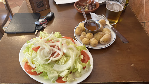 Read moreDon't expect flowers and silver service. Do expect charming wait staff, salt of the earth type, who know their menu and product, and meat. Just basically meat - and really good cuts, cooked just right over wood. My new guilty pleasure - papas arugadas con mojo. Literally just whole, un-skinned, small potatoes cooked in salt water (traditionally that would be a bucket of sea water), on the wood stove, then served with a pot of mojo picón (olive oil, garlic, coriander, paprika, cumin and other spices) With a smokey taste about them, I have no idea if this is the right way, but I just bashed them with my fist, poured on some mojo picon and chowed down. Yum, yum The setting is like a school lunch room, but outdoors and with 100%...