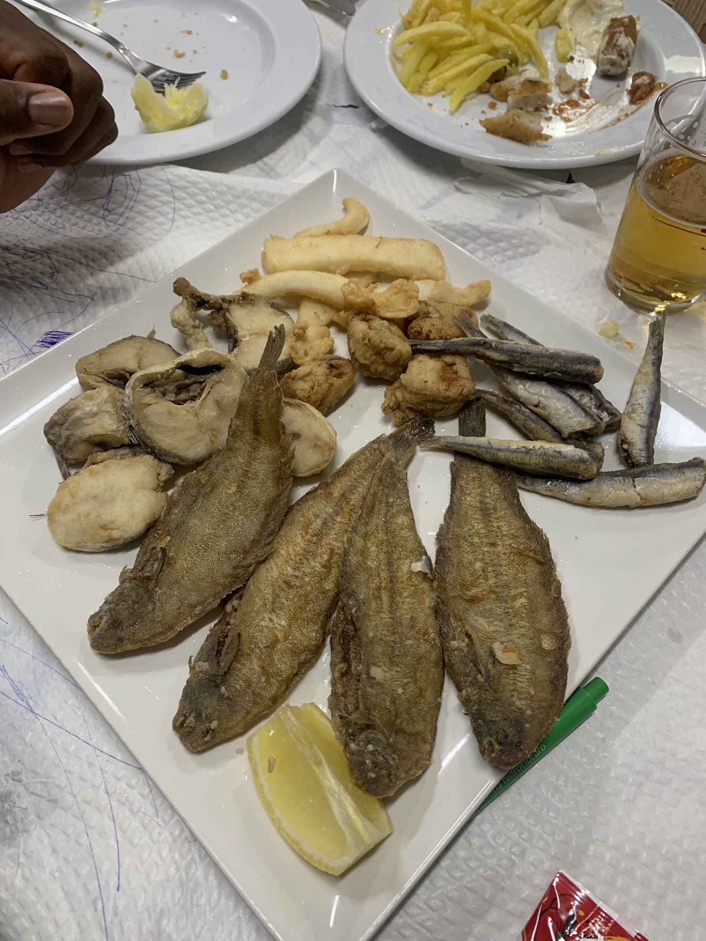Read moreAlgunas cosas más o menos bien, como el pulpo, que estaba muy bueno. Cuando fuimos a pedir gambas, nos dieron únicamente la opción de pedir gambas a la plancha, cuando las queríamos cocidas, y a la hora de pedirlas cocidas nos dijeron que entonces debíamos pedir gambas "extra", definición que no había oído en mi vida y que se supone que se refiere a unas gambas de mejor calidad, en mi opinión las gambas o las tienes buenas o las tienes malas, no hay más. En cuanto a las puntillitas, la ración da auténtica vergüenza, te ponen unas pocas puntillitas con toda la cara dura, los chipirones; venían 4 más secos que la mojama. El menú infantil traía 4 mini croquetas, una enana pechuguita de pollo empanada, 2 huevos y mil patatas, ocuoando estas casi todo el plato. Las gambas que pedimos, al final acabaron siendo a la plancha y no estaban malas, pero no fue lo que pedimos... el año pasado fui y flipé con la buena calidad, era tremendamente bueno, este año en cambio deja...