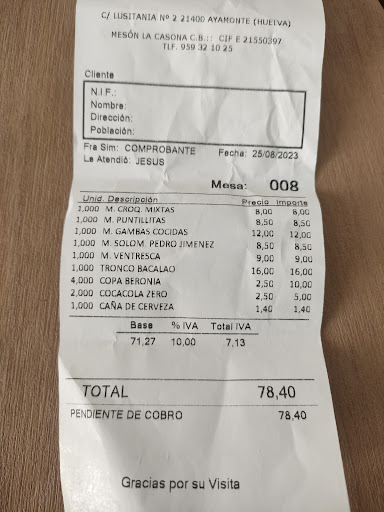 Read moreMi experiencia en el bar La Casona de Ayamonte fue una auténtica pesadilla, marcada por una falta de profesionalidad y respeto que jamás había presenciado en un establecimiento de este tipo. Lo que empezó como una simple salida para disfrutar de una cena, terminó convirtiéndose en un verdadero desplante, tanto por parte del personal como del propio dueño.