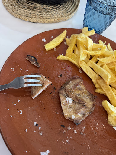 Read moreLa experiencia más surrealista que he vivido en un restaurante. Reservamos para cenar; nos sentamos y pedimos una botella de vino, una copa de Rioja aparte y un vaso de agua mientras leemos la carta y demás; por cierto, de lo más farragosa, con código QR pero con diferentes apartados de manera que has de abrir cada aparatado para ver lo que contiene. Nos traen la botella y la dejan en la hielera pero nos avisan de que los vasos van a tardar algo más. Pedimos la comida y los vasos no llegan. Los camareros, apurados, nos dicen que es que no hay copas limpias. “Bueno, pues traed vasos del tipo que sea”. Nos traen cuatro vasos de agua( o de sol y sombra, algo así 🥃). Compartimos los vasos pues éramos familia, pero vamos… lo nunca visto. Habíamos pedido otra copa de otro vino distinto, que llegó mucho más tarde, cuando ya habían llegado los tres primeros platos. Los tomates estaban buenos y bien presentados. Los chocos bien; pero cuando llega la fritura de pescado variado que en la carta prometía llevar salmonetes , resulta que éstos no están. Se lo decimos a un camarero y nos dice que no había entonces han puesto más de otras cosas. Lástima que no hice fotos porque no había mucho de nada. Se veía la bandeja alargada perfectamente bajo la fina capa de pescado y chocos todos extendidos, pero desde luego no apilados(vale 24€ la bandeja). Lo normal debería haber sido avisar de que no hay algo y ya el cliente decida lo que desea, pienso yo. Las tortillitas de camarones que pedimos llevaban algún camarón; como nos quedamos con hambre tras la ausencia de pescado pedimos otra ronda, en esta Segunda ya más bien podías ver algún bigote pero camarón poco. A la hora aproximadamente llegan la copa de vino que faltaba y las copas para la botella.