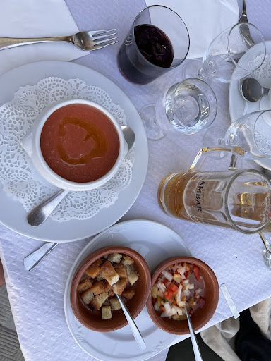 Excellent repas ! Cuisine du pays, la qualité est là et les quantités sont raisonnables ( pas de mauvaise nourriture de grosse bouffe ) Accueil, propreté ( j’ai jeté un œil par la porte de la cuisine, passé 14h, et celle ci était impeccable ) Tout y est ! Nous avons souhaitez déjeuner en terrasse malgré la chaleur, belle surprise, malgré la rue, il y’a une jolie vue et un vent qui permet de manger à la fraîche . Nous avons choisi le menu à 15€ entrée, plat, dessert, boisson. Les spécialités à la carte nous faisaient envies, mais le menu permettait de tester pas mal de spécialités du pays. Gazpacho extraordinaire, haricots blancs au chorizo comme il faut. Morue, veau, saucisse comme jamais. Pour finir riz au lait et flan au fromage, au delà des attentes. Très belle adresse si vous aimez la cuisine de grand mère sans le côté lourd et gras. Il y en a pour tout les goûts, sans oublier la saveur . Je...