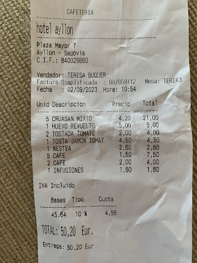 Pongo el ticket para que se vea la hora a la que pudimos desayunar el sábado y que los dueños puedan comprobar que es una reseña real.