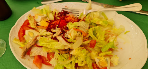 De primero pedimos: Ensalada 🥗 Mixta, plato de chocos fritos, adobo y croquetas. Luego pedimos un revuelto de chorizo y para terminar un solomillo Ibérico.