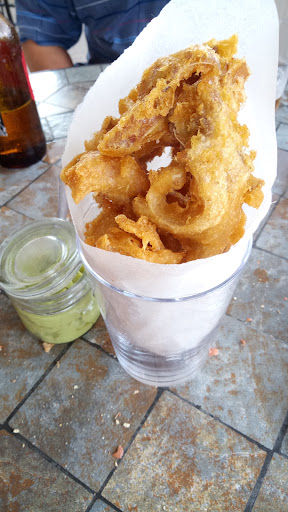Eramos cuatro y probamos los cuatro bocadillos. Las raciones tenían buena pinta en carta y pedimos por capricho Oreja en tempura con salsa de guacamole. Apuesta arriesgada y original muy bien resuelta.