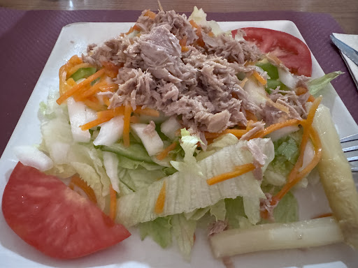Read moreComimos al menú. Platos con muy poca comida. Los calamares, te ponen mucha ensalada y cinco aros de calamar. Había pedido ensalada de primero, con lo que mi menú fue ensalada y cinco aros de calamar. De beber, una copa pequeña de cerveza y el vino una copa pequeña también. Lo que yo conozco en menú es que te ponen una botella de vino y bebes lo que quieres, o te ponen una cuarta y agua. Como una copita de vino no me da para comer, pedí agua, me pusieron una botella pequeña que "lógicamente" me la cobraron. En fin, muy rácanos con...