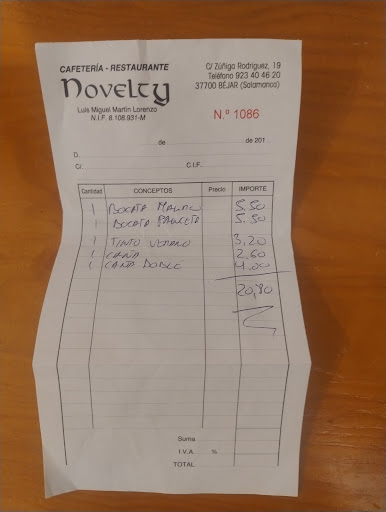 Sensación de "engaño". después de cenar pedimos la cuenta,y no nos la traen,solo el datáfono (ya que pagamos con tarjeta)y nos dice el importe,sin ticket, cuenta ni nada.2 bocadillos justitos (11€ los 2) ,1 caña,1 tinto de verano y 1 cerveza en vaso de sidra , total 20,80€ ,así que pedimos la cuenta, porque algo no nos encajaba.Vemos al camarero ir a la barra a que le rellenen la comanda (vacía)y nos la tardaron en traer como si estarían cuadrando la cuenta,si me equivoco que el dueño ponga la lista de precio, que no la pedimos por evitar una situación más incómoda..Si estoy equivocado,por favor,pon la lista de precios y cuando se pide la cuenta se da ticket de caja,no algo hecho a mano de forma...