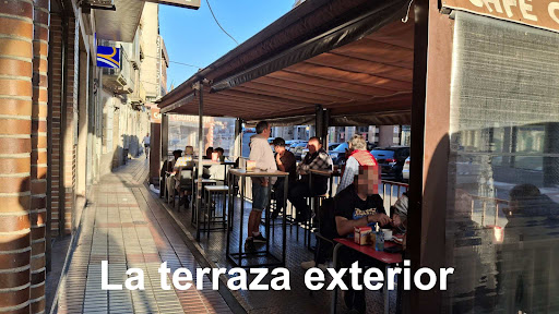 Tiene mesas para desayunar en el interior y terraza en el exterior pero no hay servicio exterior en la terraza, el pedido te lo tienes que llevar tu mismo.