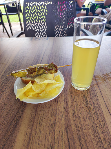 Con la bebida me sirvió un pinchito de pollo para entretener la espera.