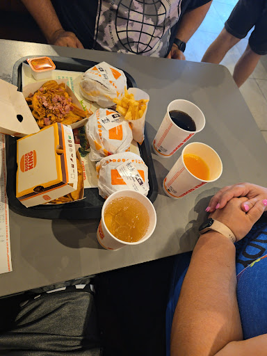 Read moreFuimos 4 personas ayer 6 de enero, comida de reyes, hago mi pedido como siempre y como se que se tardan pues nada paciencia, pero cuando me llaman me ponen solo la cerveza y no le ponen los otros 3 vasos del menú, tanta gente que 5 minutos esperando para 3 vasos, al volver a mesa me comentan que faltan las 4 salsas de queso para las patatas supreme, al ir otra vez 10 minutos para que le den las salsa de queso, gente que quería armarla porque estaba mal atendida y su pedido estaba tardando una hora y el problema no es cocina es que hay 3 personas para tanto trabajo y se entiende que pasen estas cosas, lo no entendible es que te gastes 60€ para pasar trabajo en una comida, el pan de la brutal bacon un poco duro. Burguer king me gusta mucho pero ya no voy tanto por estas cosas, y si es el del carrefour de valverde pides por la app para que te manden a casa, pides una cosa de mas valor y te mandan de menos o directamente lo que quieren, claro como estas en casa cansado de trabajar toda la semana no vas a ir directamente a quejarte allí, una cadena así debería de poner mas personal y hacer las cosas mejor hay muchas cosas que dejan...