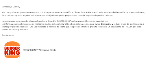 Read moreestuve con mi esposa el 3 de octubre del 2020 y pedimos una doble hamburguesa ,en la foto que ponen se veía bastante grande y jugosa, y al ponérnoslas parecían que las habían pisado parecían la mitad del anuncio, se lo comente a uno de los trabajadores de allí, y no me dijo nada, cuando llegue a mi casa, me metí en la pagina de burguer King pidiéndoles al menos una explicación y mandándoles las fotos para que viesen la diferencia, por correo me contestaron que recibiría una contestación lo mas rápido posible, y hoy 6 de enero del 2021 todavía lo estoy esperando, simplemente quiero comentarles que te ponen información y fotos muy llamativas y luego no son iguales, cuando compren algo miren bien la foto de lo que pidieron y después vean lo que le entregaron, voy a intentar poner las dos fotos una lo que anuncian y otra lo que me pusieron (espero que me dejen ponerlas) ah! y que al menos contesten a las quejas de los que les consumen y no se...