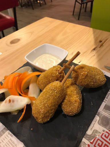 Read moreHemos ido buscando opciones vegetarianas en Badajoz y, la verdad que hemos salido muy contentos. La comida me ha parecido espectacular, se nota q les gusta agradar y esmerarse por satisfacer al cliente. Hasta el pan y unas simples patatas fritas no ha sido los típicos de cualquier bar. Hemos pedido plato de arroz meloso al curri, albóndigas de lentejas y canelones de soja texturizada , con dos bebidas y un postre q ha consistido en una quesada pasiega, nos ha costado 33€ (2 personas) , así que no entiendo dónde come la gente que se queja del precio porque pocas veces he dado 5 estrellas a ningún restaurante pero creo que la comida, el servicio y el ambiente se lo merece. Totalmente recomendable y , por supuesto , volveré cuando vuelva a Badajoz. A pesar de contar en carta con pescado y carne ( que no pedimos xq somos vegetarianos), me imagino que seguirá siendo una buena opción para omnívoros, a juzgar por lo que hemos probado. Tienen pocas mesas pero es preferible para poder dar un buen servicio a...