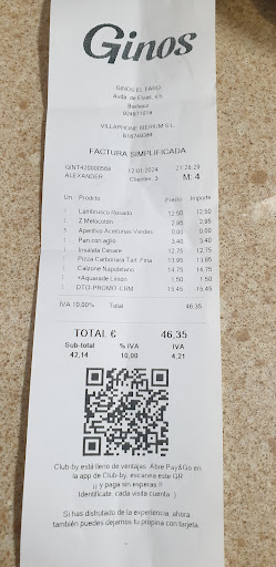 Read moreJá estive em restaurantes Ginos em muitas cidades e nunca fui tão mal tratada. Com mesas prontas para podermos sentar esperei mais de 5 minutos à porta e os funcionários iam para lá e para cá e nem olhavam para nós. Quando nos colocámos no caminho para forçar que nos atendessem o gerente com ar de frente olhou em volta e disse um minuto que a colega ia limpar uma mesa (tinham várias mesas limpas mas eram de 4 então tinha de ser uma exclusivamente para duas pessoas.... Sendo que eram 15:30 e por certo mesas não lhe iam faltar). Continuámos a aguardar e as colaboradoras andavam para lá e para cá a olhar e nem sequer tocavam na mesa para limpar. Quando passado mais 5 minutos questionamos o gerente se ia demorar muito responde de forma arrogante que tinhamos que esperar limpassem a mesa. Que todos estavam ocupados e que podíamos ir embora apontando para a porta. É esta a educação do responsável de loja e o exemplo que dá à equipa. Penso que está cadeia de restaurantes deveria reavaliar o nível de educação e profissionalismo dos seus colaboradores, principalmente quando assumem cargos de chefia. Saímos e fomos a outro dos muitos restaurantes do El Faro onde fomos excepcionalmente...