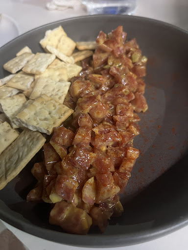 Read moreVimos este local por casualidad lo buscamos por google y nos llamo la atencion su carta, muy original y variada. El camarero que nos atendio fue muy amable y atento pero el servicio fue pesimo, pedimos el tartar de fuet y la ensaladilla ambos cosas frias (hechas previamente, o rapidos de hacer) y tardaron mas de hora y media en servirnos el primer plato. Pedimos tambien la tosta de foie que fue lo ultimo que llego a la mesa despues de 2 horas aproximadamente. El tartar y la ensaladilla estaban buenas, pero nada especial, la tosta si nos gusto mucho , alguna pega la rucula estaba con los tallos y todo y era un poco incomoda de comer, pero estaba rica. De cantidades muy bien. Hubieramos pedido postre pero debido a la tardanza se nos pasaron las ganas. Algo a tener en cuenta es que nos invitaron a la bebida, para disculparse por la tardanza, un gesto de agradecer. Seguramente le daremos una segunda oportunidad gracias a este gesto, ya que nos quedamos con ganas de probar...