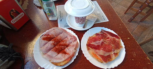 Read moreEspectaculares las migas con huevo y jamón. Al local le han dado un cambio de aires, ahora con decoración ambientada en el mundo del cine, y aunque la idea es buena, se nota que le han puesto muy poco cariño (un tiburón y un dinosaurio de papel maché, artículos sin gracia comprados en el bazar de "Todo a 1€", vinilos puestos sin mucha inspiración...) Dejando esto de lado, es un bar de barrio con buenos desayunos y jamón de verdad. La actitud del camarero va acorde al local: no todo el mundo podría soportar sus excesos de confianza, sus voces y sus chascarrillos (con esa actitud a mí me hubieran despedido de muchos sitios) pero si le sigues el rollo te sentirás como en casa. Nosotros estuvimos...