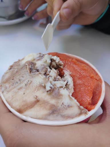 Read moreLos helados son geniales. Recomiendo el de Pistacho, Coco boom, Avellana, Turrón y Vainilla Cookies. Realmente, cualquier helado que parezca que está rico lo estará. Lo malo es el ambiente, el otro día nos econtramos con una familia con tres animales y unos padres que, no pasaban de ellos, jugaban con ellos, pero les dejaban gritar y correr por el restaurante mientras que se reían. Pero de eso tampoco tienen la culpa los dueños, solo fue una mala experiencia; lo malo es que tienen unos altavoces que ponen música horrorosa (depende del gusto, pero no). Creo que poner música horrorosa por todo el local hace que simplemente te merezcas una estrella en el ambiente, por eso es bueno que solo esté en una mitad de la heladería y en la otra no se oiga. Igualmente, la temperatura está muy bien, y tú vas a comerte un helado, y probablemente no sea sentado, así que tampoco afecta a nada. Eso es lo único malo de este sitio, la música. El resto es perfecto, y si te gusta esa música, genial (aunque entonces eres parte del problema 😛). Seguramente la mejor heladería de Badajoz...