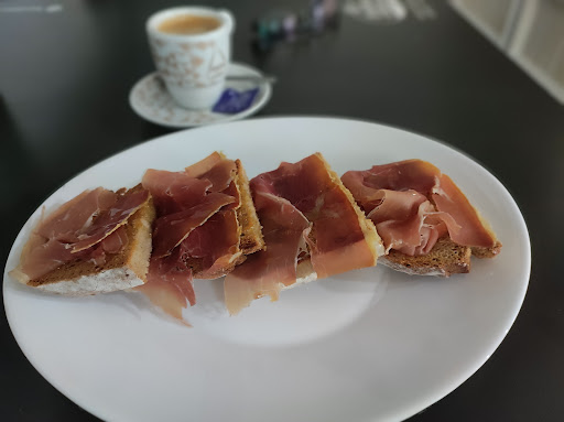 Read moreSitio tranquilo para desayunar aunque poco espacio y se llena en seguida. Pedí una de jamón con aceite. El pan es bueno pero en el jamón deberían poner uno de mejor calidad. Que estamos en la tierra dónde se crían los mejores cerdos ibéricos . Así que punto a mejorar. Los dueños son agradables en el trato. Además puedes llevarte pan cortado para casa. Nada que ver con el que se venden en los supermercados. Los tiene de trigo,centeno y trigo y de centeno. Y pueden dártelo cortado...
