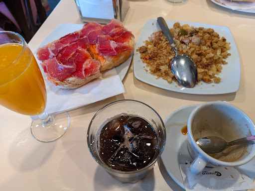 Read moreBuen servicio y espectacular tostada de salmorejo con lomo doblado, siendo la tostada del Concurso de Desayuno, estando un menú con bebida caliente y zumo. Es de los pocos sitios que tienen migas todo el año, cosa que yo, como estoy fuera, agradezco infinito.