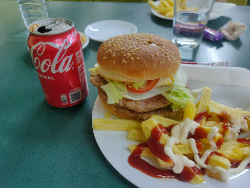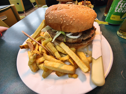 Read moreBuenas hamburguesas a un precio asequible. Nuestro menú fue hamburguesa barbacoa y un par de hamburguesas de pollo empanado. La de barbacoa estaba muy rica. Las chicas que atiende son muy amables y facilitan las combinaciones. Puedes pagar con tarjeta de crédito. Lo único incómodo es que los servicios están arriba. El local se ve limpio y los sábados se llena. Se encuentra en frente de un centro comercial con cines por lo que es una buena alternativa para después de ver una peli si no queréis ir al Mac Donald. Y por último en las noches de verano está al lado del Guadiana y pasear por su Rivera es una gozada para bajar la cena. También está bien ubicado para tomar una copita después de cenar, hay muchas terrazas y locales...
