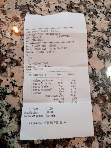 Read moreLa camarera es una maleducada, estamos consumiendo en la terraza y cuando mi hijo TEA le pide un vaso de agua le da una botella, le digo al camarero que se la lleve y vuelve a entrar el niño a pedir un vaso de agua y le manda a la fuente del parque. Cuando entro para hablar con ella me dice que no puede estar perdiendo el tiempo y sale el encargado diciendo que tengo que entender que tiene mucho trabajo, estamos literalmente 5 mesas a las 19:30. No recomiendo este bar, es preferible irse a cualquier otro.